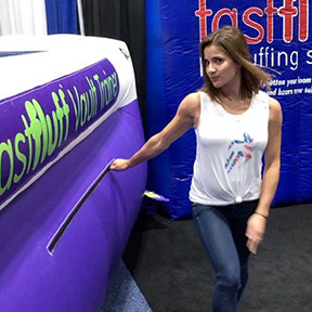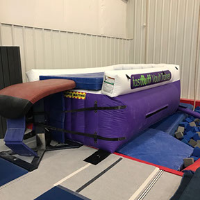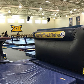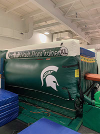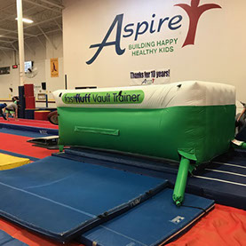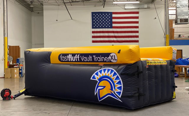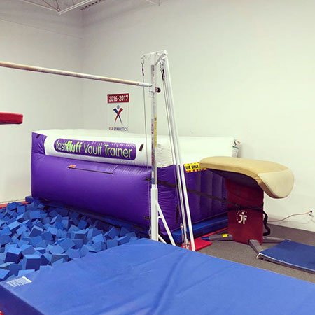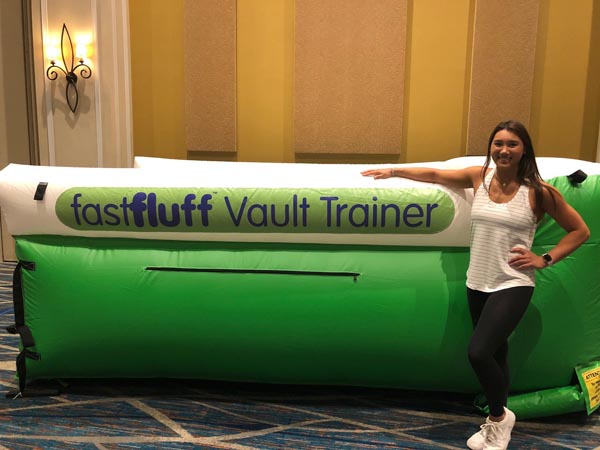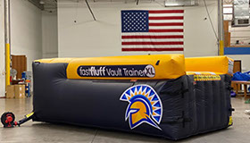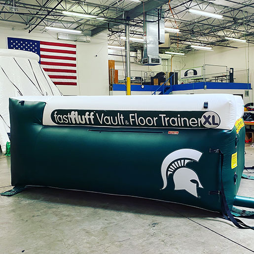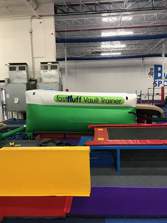 You have a limited time to get all your work done during the vault rotation. Hunting down all mats to use and moving them takes up precious time that could be spent practicing. You don’t want to waste 5-10 minutes every time you practice. Wasted minutes wastes turns. With a push of a button the NEW FastFluff™ Inflatable Vault & Floor Trainer inflates. Now its time to train!
